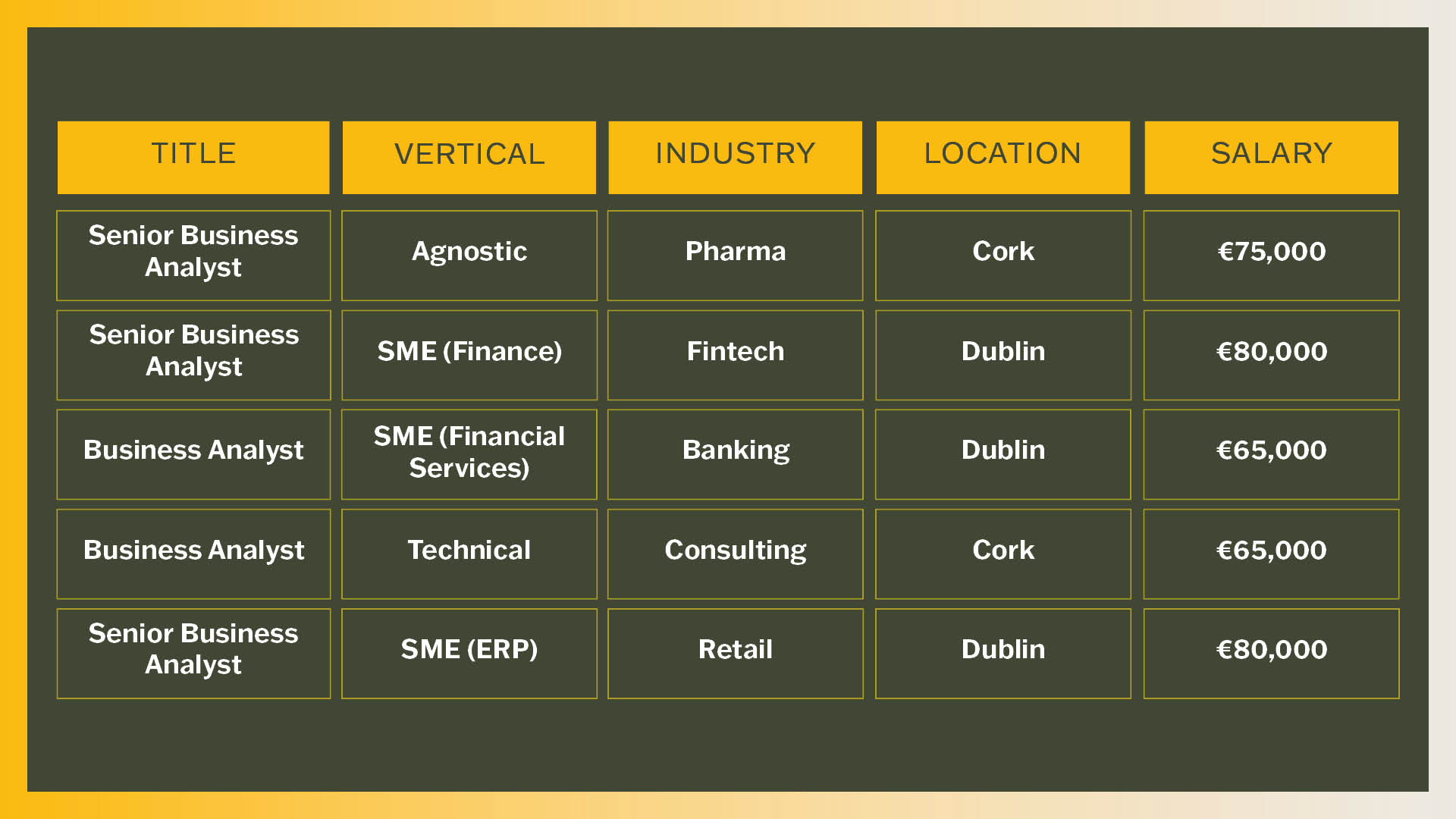 - High Demand and Supply Constraints: Demand for skilled Business Analysts, especially in digital transformation and process optimisation, is outpacing supply. Analysts with 3-5 years of experience are exploring international opportunities, while in Ireland, the limited talent pool is driving competition, longer recruitment timelines, and salary inflation, particularly outside Dublin.