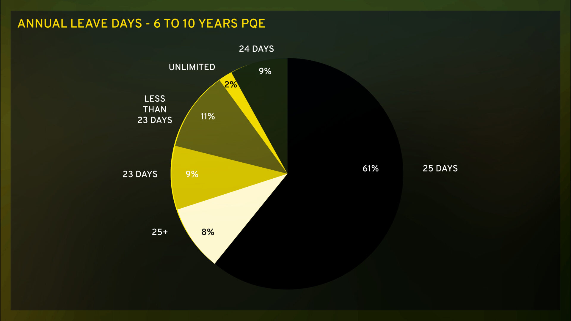 The increased flexibility in hybrid policies for the 6–10 years PQE cohort is also unsurprising, given the roles are more autonomous and less reliant on daily oversight, making remote or hybrid work more feasible.
