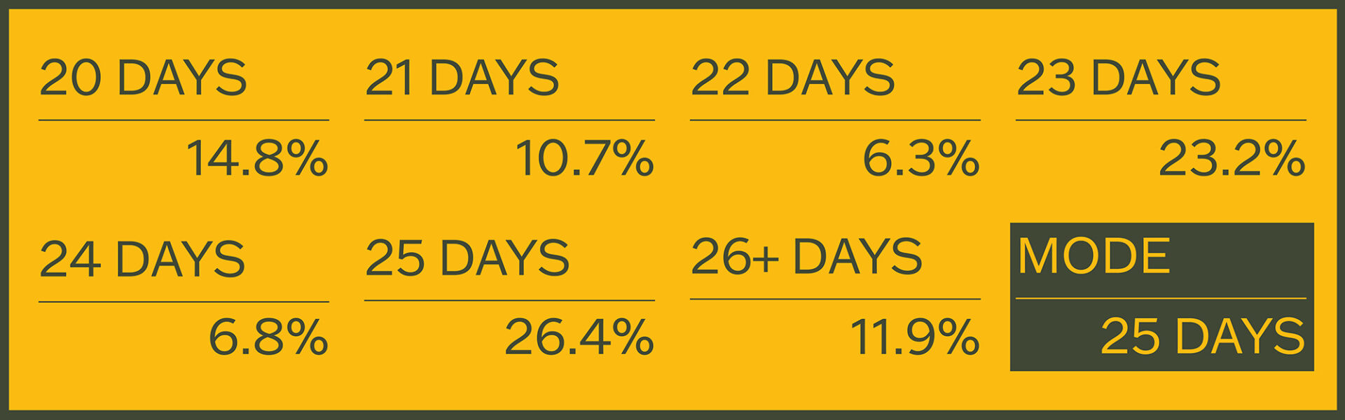 Offering 23–25 days of annual leave or more is critical. Anything less puts companies at a notable disadvantage in attracting and retaining talent.