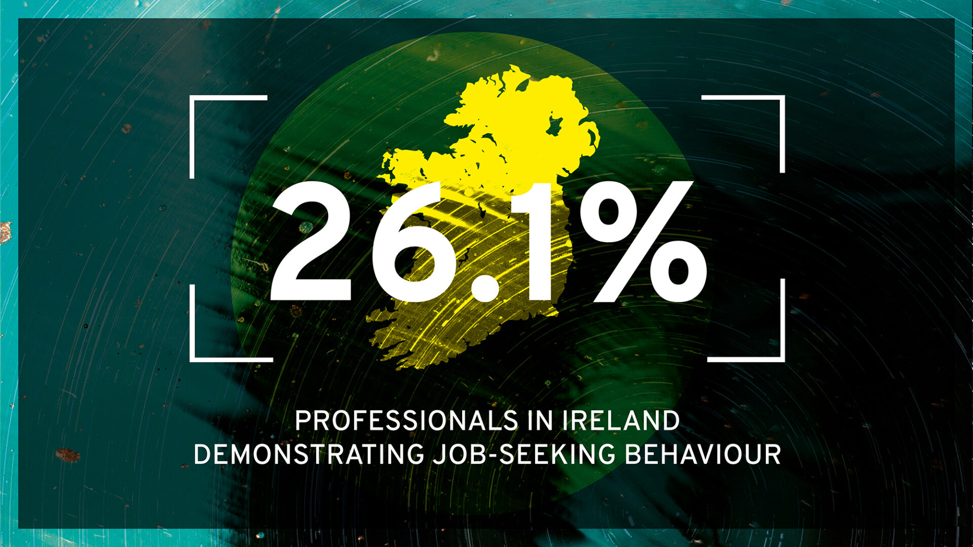 Year on year, the percentage of professionals in Ireland demonstrating job-seeking behaviour has remained flat. 26.1% of professionals in Ireland are demonstrating job-seeking behaviour. Companies with less than 26.1% of their workforce showing this behaviour are performing well, while those above this benchmark may need to address potential challenges.