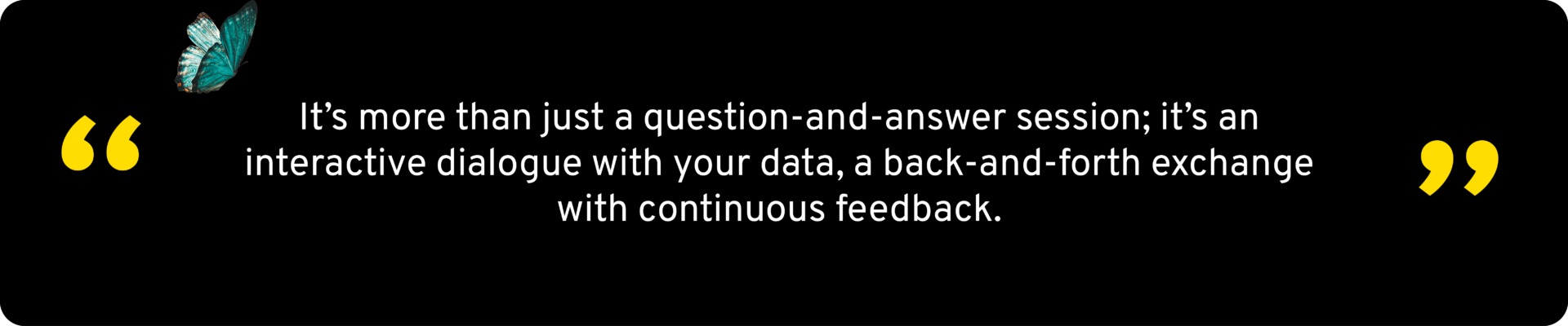 For businesses adopting Generative AI, it’s essential to structure their data so these models can access it effectively. This approach democratises data access, allowing employees to interact with their data through conversation rather than needing to know specific code or search methods. It’s more than just a question-and-answer session; it’s an interactive dialogue with your data, a back-and-forth exchange with continuous feedback.