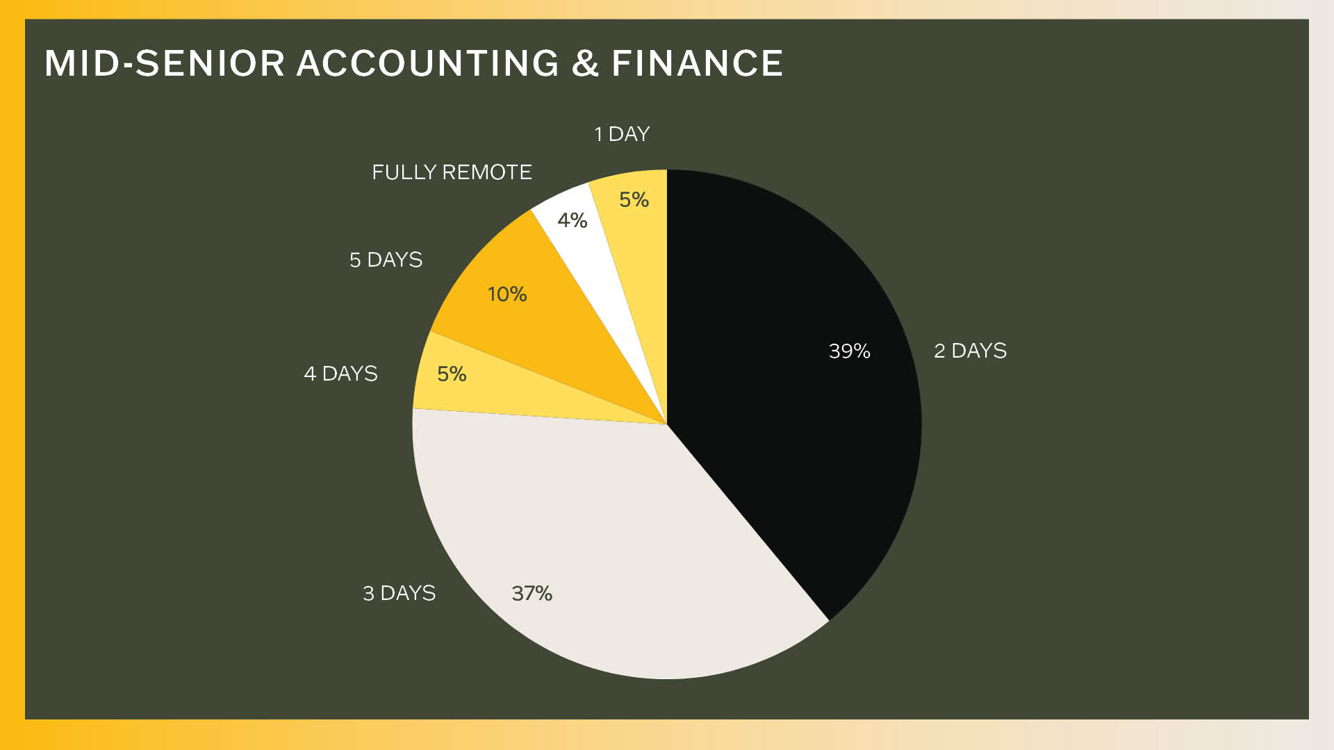 The graph below is based on a sample of roles the mid-senior accounting & finance team in Barden supported in 2025 and as you can see, the most common hybrid arrangements vary depending on the organisation.