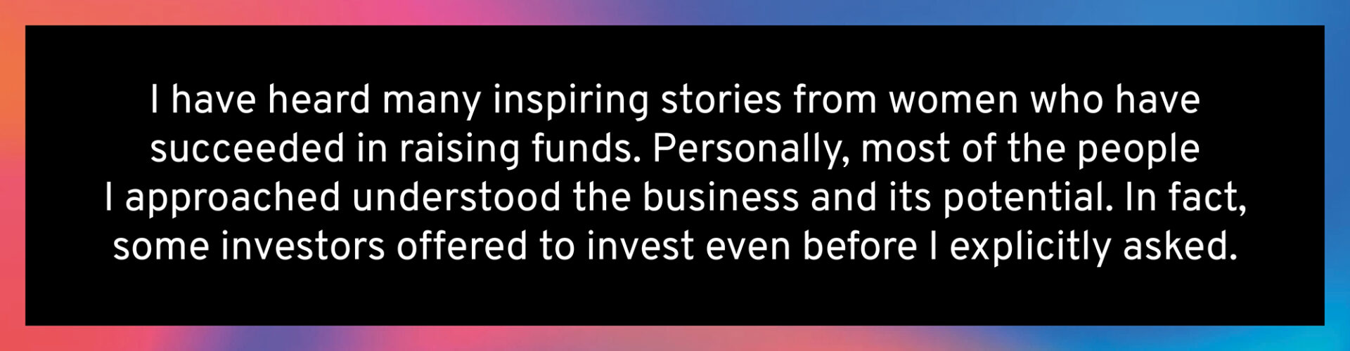 I was well aware of the challenges female entrepreneurs face. To prepare, I joined networks and participated in two different programs over two years, Going for Growth and EY Winning Women Entrepreneurs Programme. These provided useful guidance on fundraising, shareholder agreements, networking, sales, and other business essentials. The EY Winning Women Programme gave me access to an incredible network of women globally.