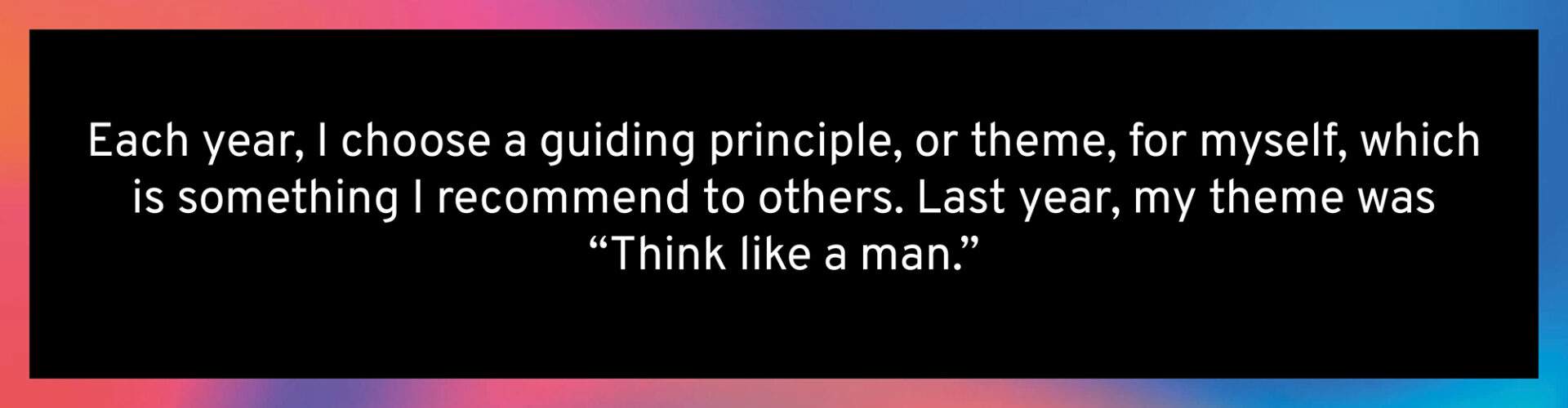 I believe women aren’t always great at acknowledging their achievements. People tell me, “You must be so proud of what you’ve done,” but I rarely sit back and think, “Aren’t I great?” I have received awards and recognition, but my mindset is always focused on what’s next, on the next goal.