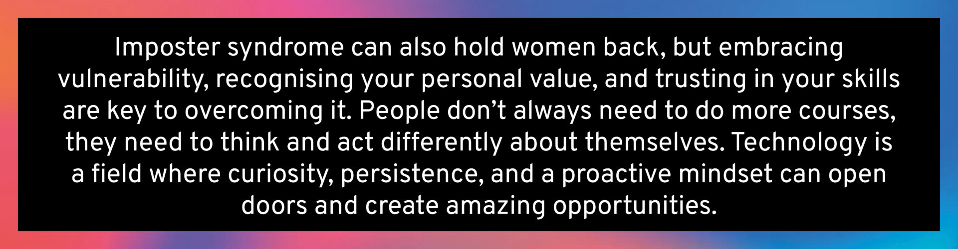Technology firms should continue to engage with schools, showcasing job opportunities and providing hands-on experiences, helping students understand the possibilities and the paths to get there. It’s not solely about STEM subjects but also about showing young women that these careers are diverse and dynamic, not just sitting behind a computer coding all day. Mentorship also plays an important role and it’s crucial to give back and raise up the next level of women.