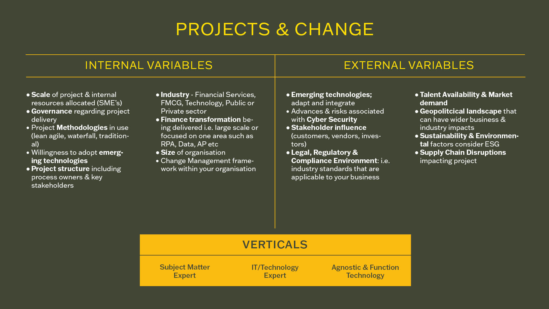 These verticals provide a practical way for both organisations and professionals to clearly define capability, experience and value. Understanding the primary vertical required is critical when shaping a role, building a project team or assessing the impact an individual is best positioned to deliver. In practice, many transformation initiatives require a blend of these verticals working together. For example, in an Enterprise Resource Planning (ERP) programme, a technology-focused Project Manager with deep ERP delivery experience will typically work alongside Subject Matter Experts across areas such as Record to Report, Order to Cash, and Finance & Controlling. In addition to being supported by function-agnostic delivery leadership to ensure overall governance and momentum.
