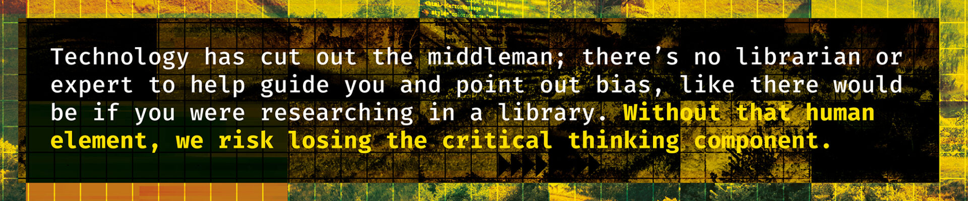 We also lose a lot of human interaction. We are not always seeking out experts or diverse perspectives because we think we have already got the answer from this one omnipotent source.