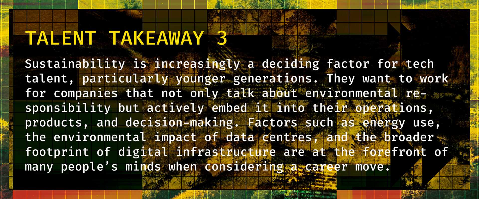 There is a definite tension between the resource demands of technology and the critical role it can play in helping to combat our climate crisis. While a robust sustainability agenda is front-of-mind for our Future of Tech professionals, Jordan Ligos noted that “for people in leadership or working in tech now, I’m not sure sustainability initiatives are front and centre.”