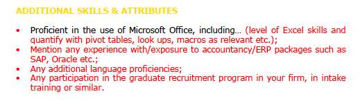 It’s a good option to include some points here around general key responsibilities throughout your training contract.