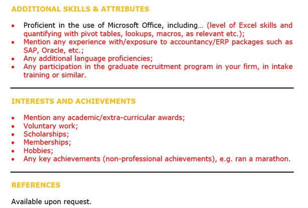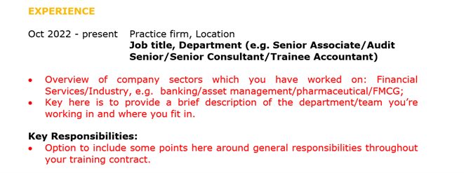 It’s a good option to include some points here around general key responsibilities throughout your training contract.